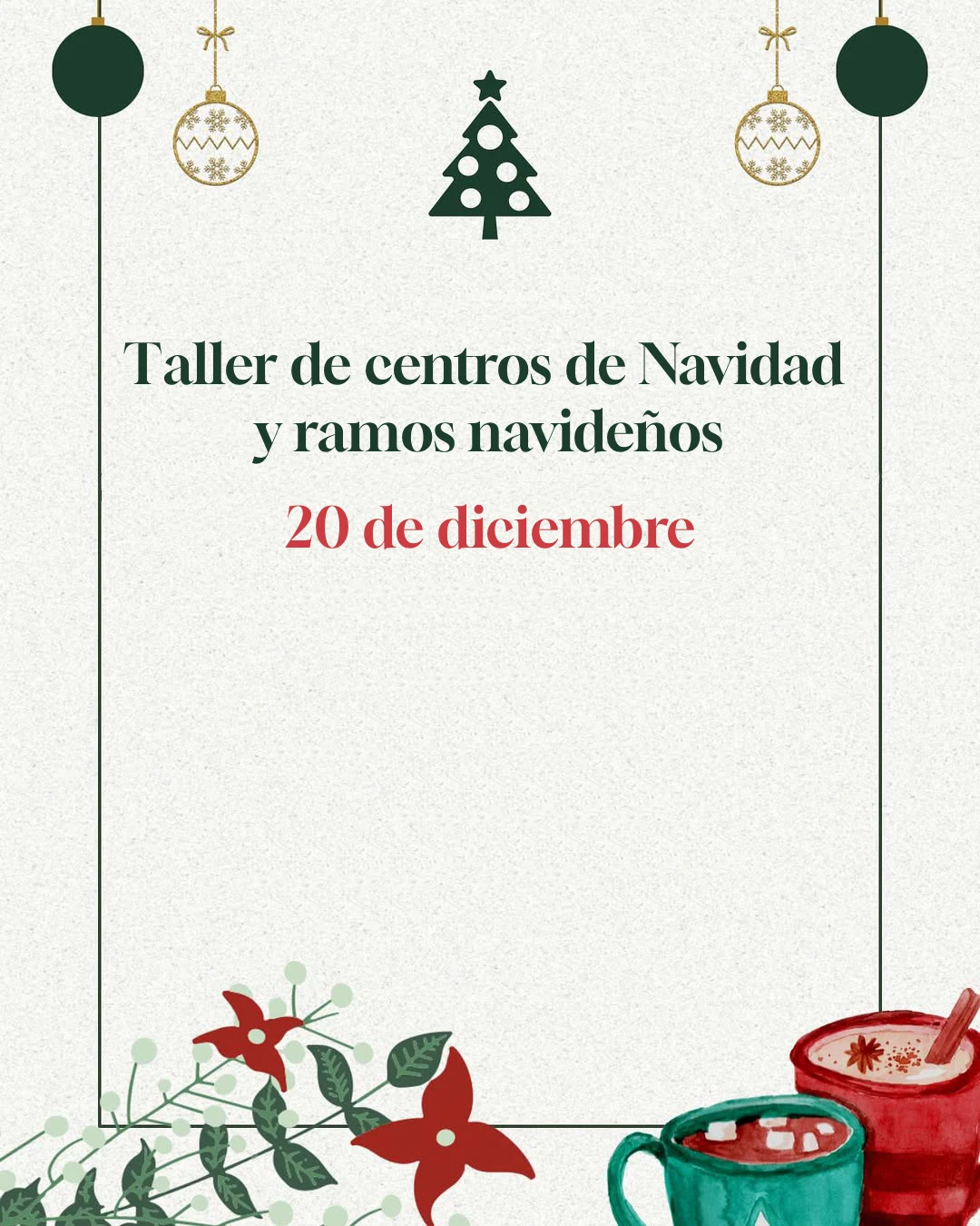 Fecha 20 de diciembre. Incluye materiales, delantal, herramientas, bebidas y picoteo navideño.